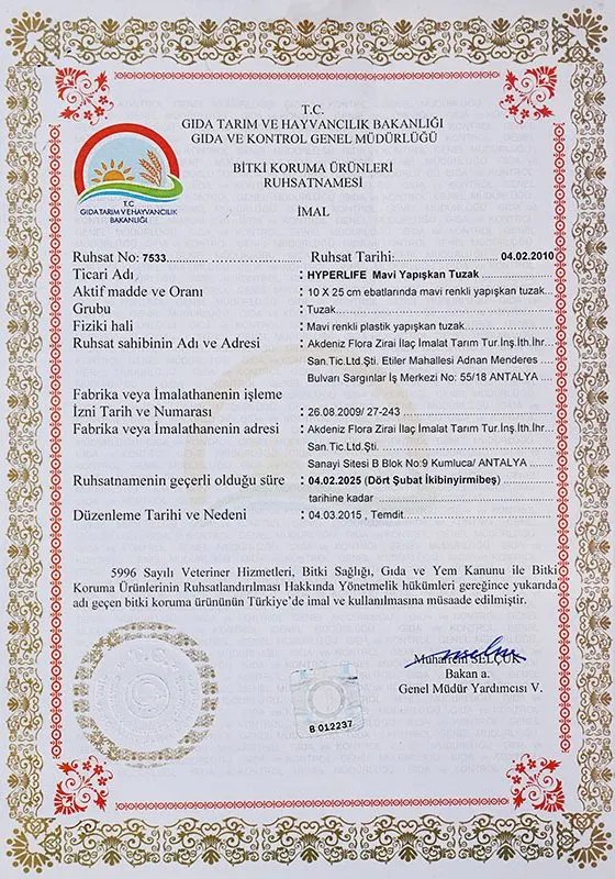 Antalya'dan Tüm Dünyaya En etkili feromon, kart ve rulo yapışkan tuzaklar, delta, su tuzağı, funnel, ışıklı ve diğer tuzak çeşitleriyle biyolojik koruma sistemleri konusunda araştırmalarımız sonucu ürünlerimizi geliştirmeye devam ediyoruz. Bitki Koruma Sistemi ile Hedefini Vur! Tarımsal alanlarınızın zararlılarla mücadelesinde yapışkan kart tuzaklar ve yapışkan rulo tuzaklar ile bitkinizin koruma işlemini gerçekleştirip kaliteli hasatı elde edin. Her haşera için ayrı formul yerli üretim yapışkan tuzaklar Sarı, mavi, siyah ve sarı-mavi karma renklerde kart tipi, rulo tipi yapışkan tuzaklar ve gözlem ekipmanları ile tüm ziraatcilerin çözüm ortağıyız.