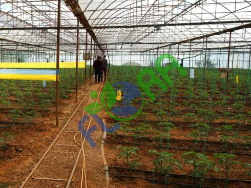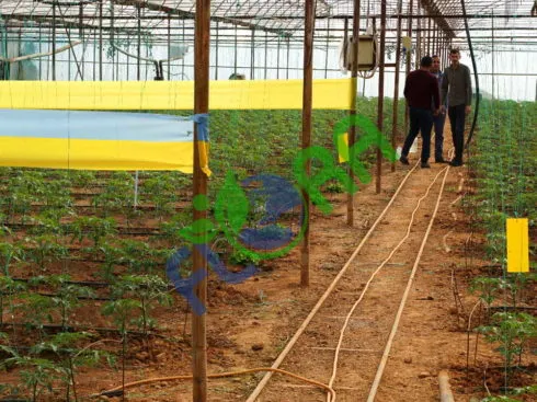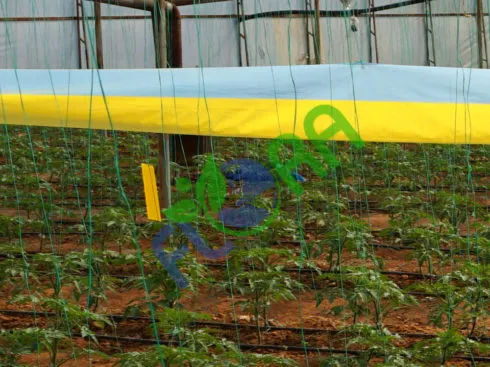 Konusunda uzamn tuzak uygulamam personellerince titizlikle yerleştirilen yapışkan tuzaklar ile görsel ve kalite olarak birinci sınıf domateslerin yetişmesi için gerekli olan bitki koruma sistmelerinde hızla devam etmekteyiz.